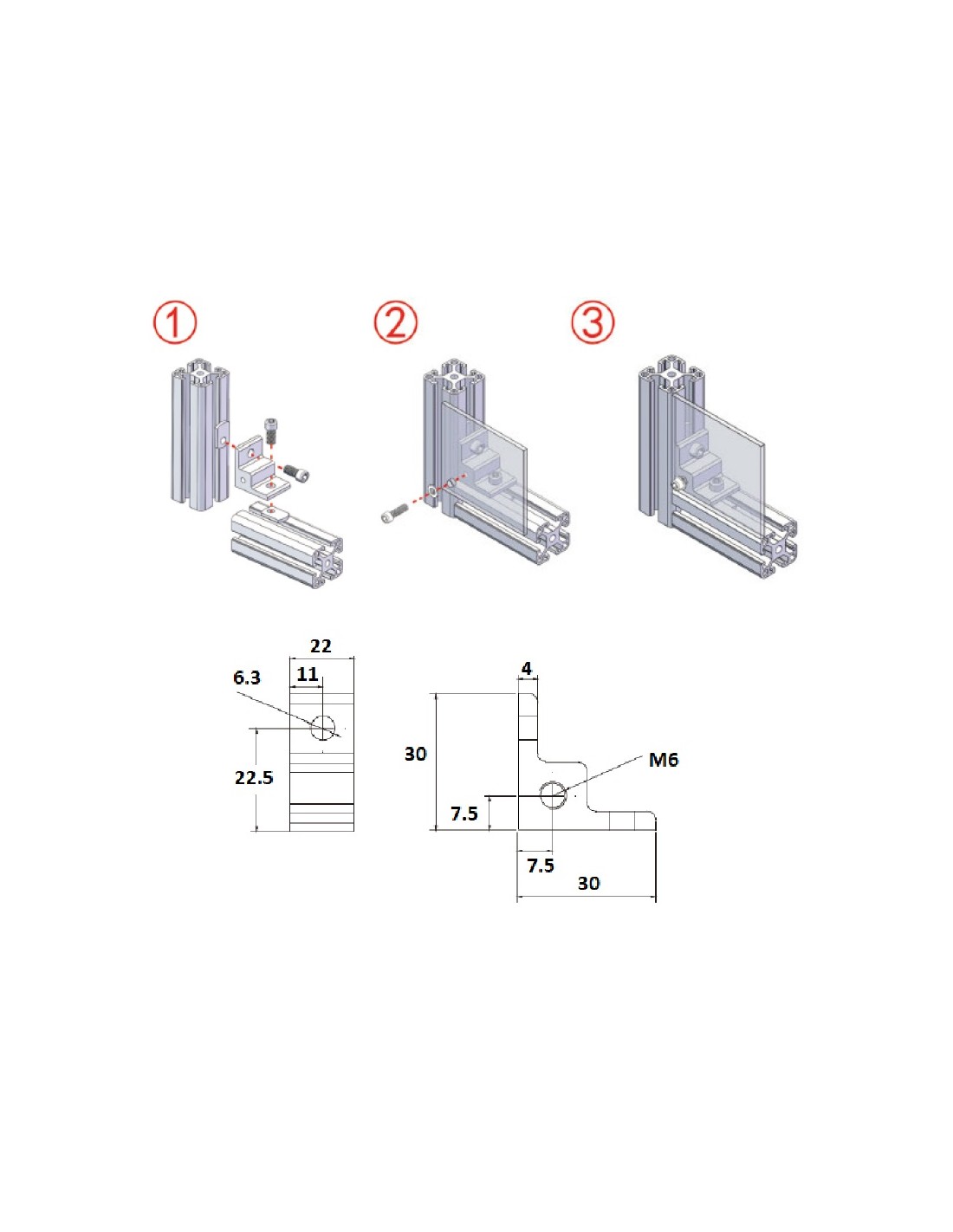 Escuadra para fijación de paneles metálicos y tableros - 3030