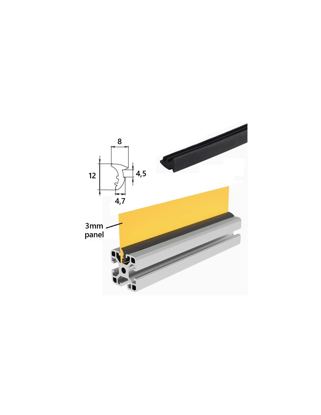 PERFIL 3030 R8 anodizado NEGRO. Peso: 0,932 kg/ml