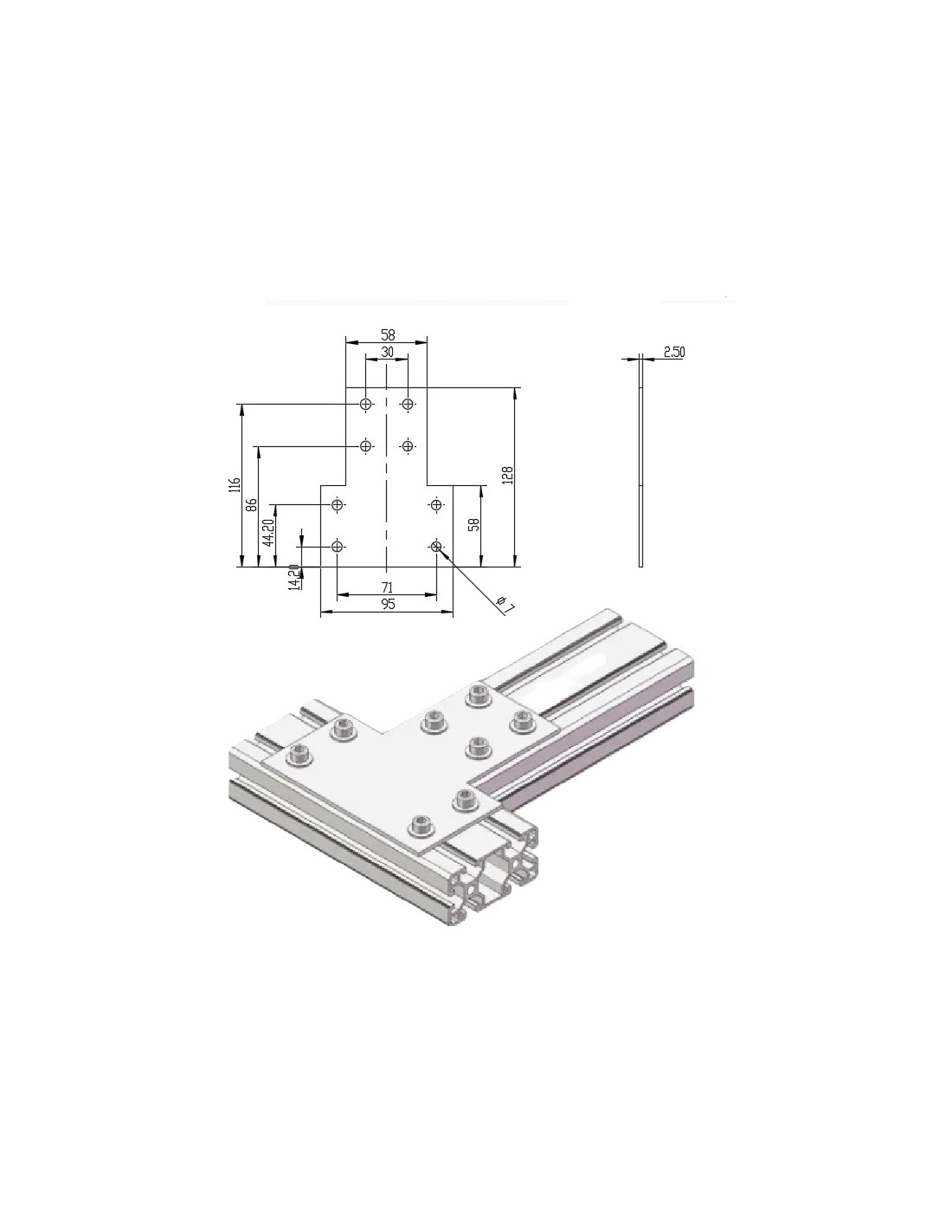 * Unión en "T" lateral fabricada en acero al carbono. Lacado gris.