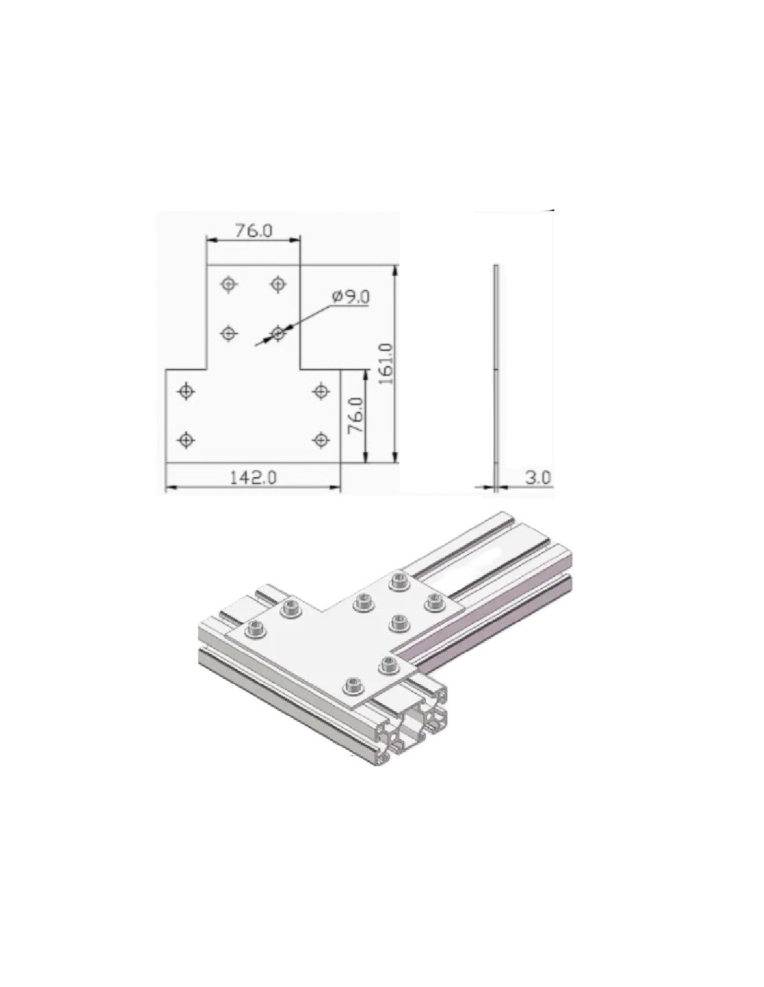 * Unión en "T" lateral fabricada en acero al carbono. Lacado gris.